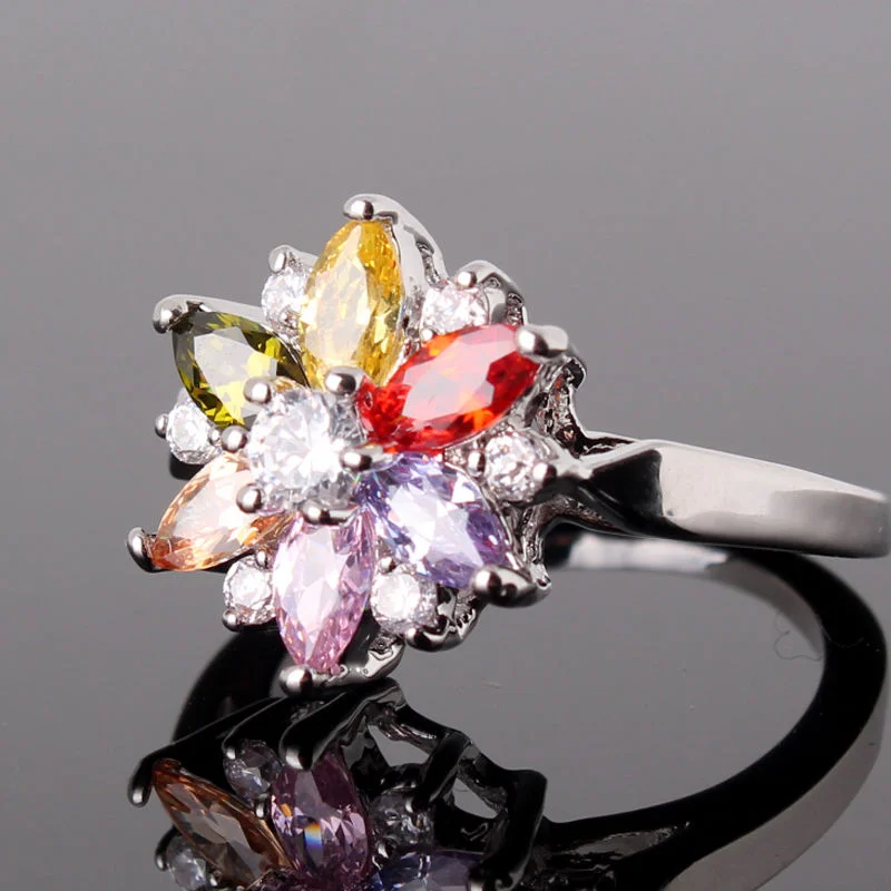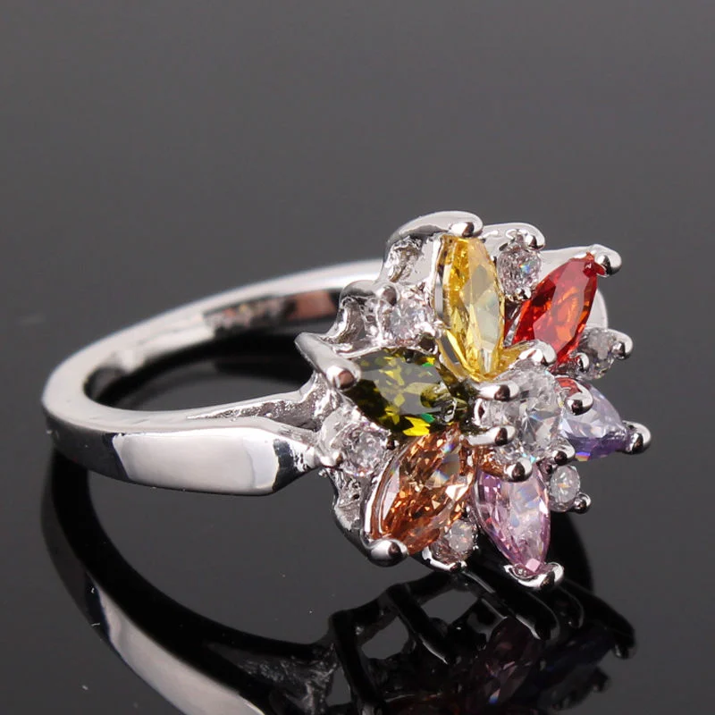 18k White Gold Filled Colorful Sapphire Vintage Ring