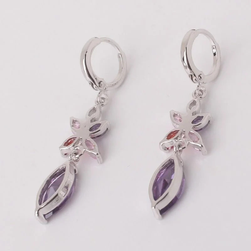 18k White Gold Filled Marquise Purple Sapphire Earrings