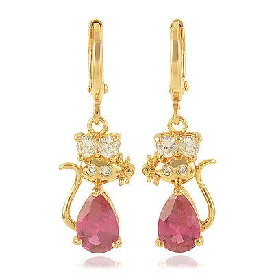 32MM 10k Solid Gold Filled Cubic Zirconia Minnie Mouse Dangle Earrings