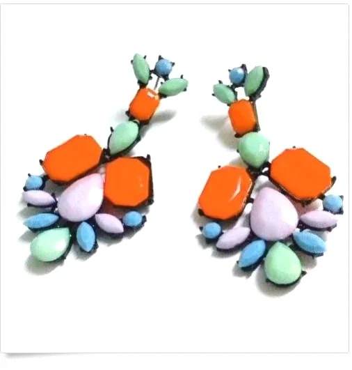 Fashion Charm Resin Drop Rhinestone Flower Dangle Earrings Stud