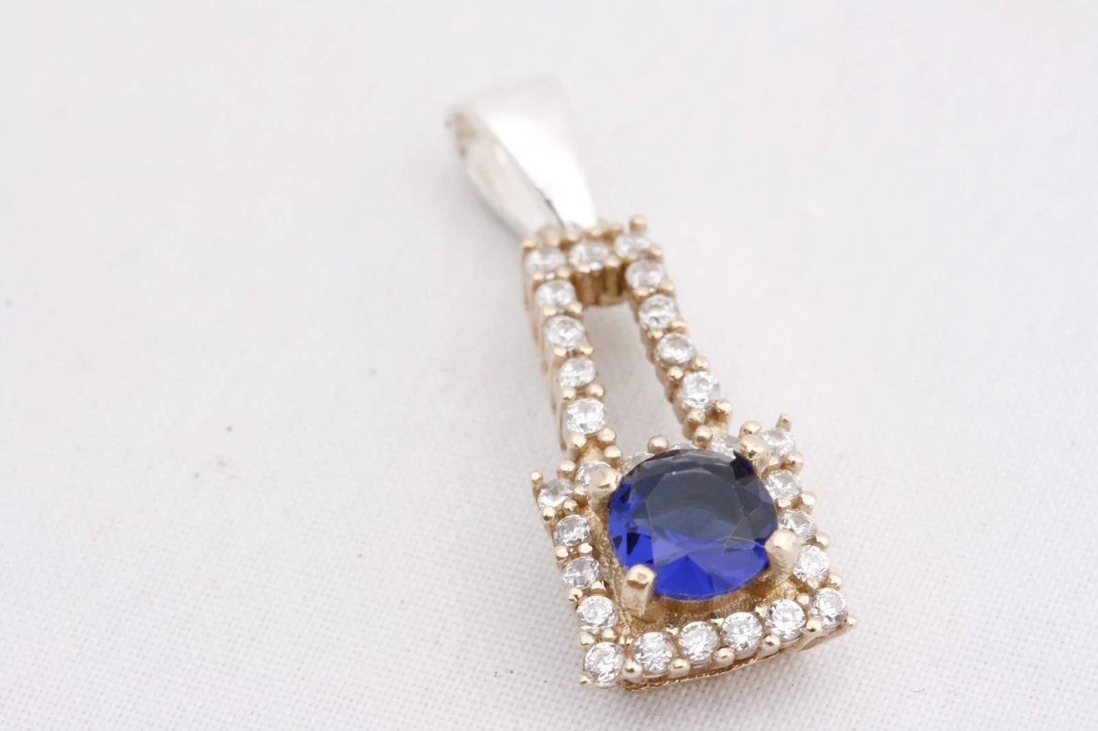 Handmade Sapphire Topaz 925K Sterling Silver Pendant
